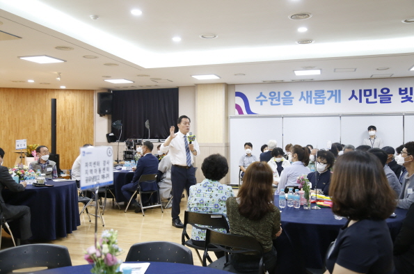 수원시는 협치와 참여라는 두 개의 키워드를 실행해 나가고자 지난주 4개(권선구, 영통구, 장안구, 팔달구) 구청 방문에 이어, 44개 동을 9월 말까지 순회할 계획임을 밝혔다.