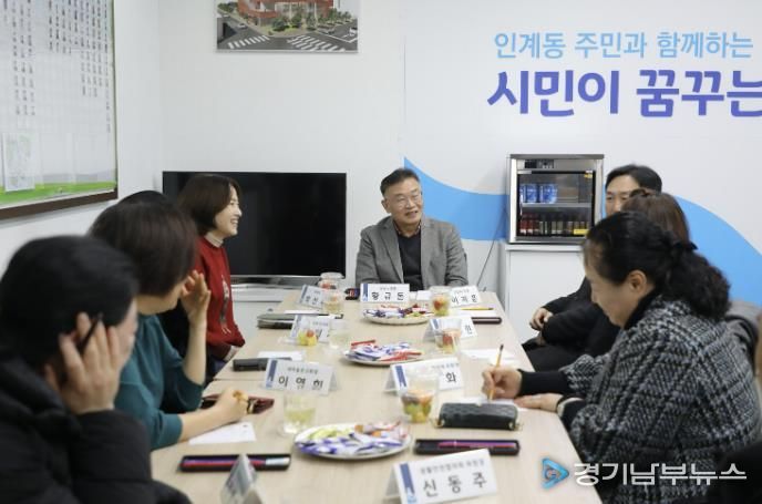 2일 첫 방문지로 인계동과 매교동을 찾은 황규돈 구청장은 유관 단체장 및 주민들과 만나 ▲인계동 신청사 개청에 따른 지원 건의 ▲장마철 대비 수원천 주변 도로 등 환경 개선 요청 ▲보도블록 정비 ▲매교동 신청사 설계시 주민의견 반영 요청 등 주민 안전과 생활 편의 개선에 대한 지역의 애로사항을 경청했다.