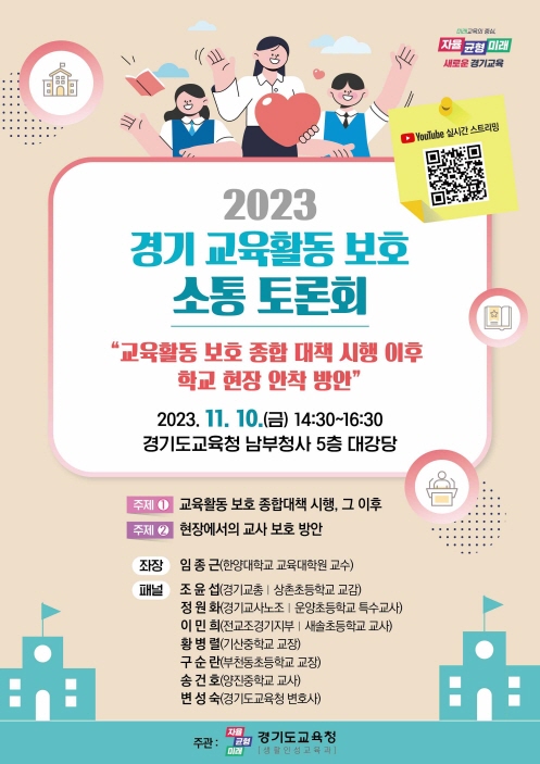 경기도교육청이 실효성 있는 교육활동 보호 대책 마련을 위해 ‘2023 경기 교육활동 보호 소통 토론회’를 오는 10일 개최한다.