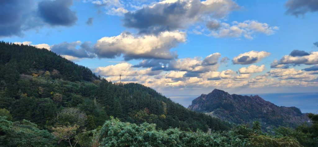 너울성 파도가 심해 울렁울렁 여기저기서 욱~ 욱~ 소리가 들린다. 다들 멀미약을 미리미리 먹었으면 좋을련만, 나는 멀미약을 마시지 않고 잘 버틸 수 있었다. 울릉도에 3시 20분에 도착하여 숙소에서 짐을 풀고 식당으로 와 늦은 점심을 먹었다. 4시 28분에 KBS송신소에서 출발하여 성인봉을 향해 발을 내딛는다. 산등선을 오르면 오를수록 해는 넘어가고 어두움이 찿아왔다.