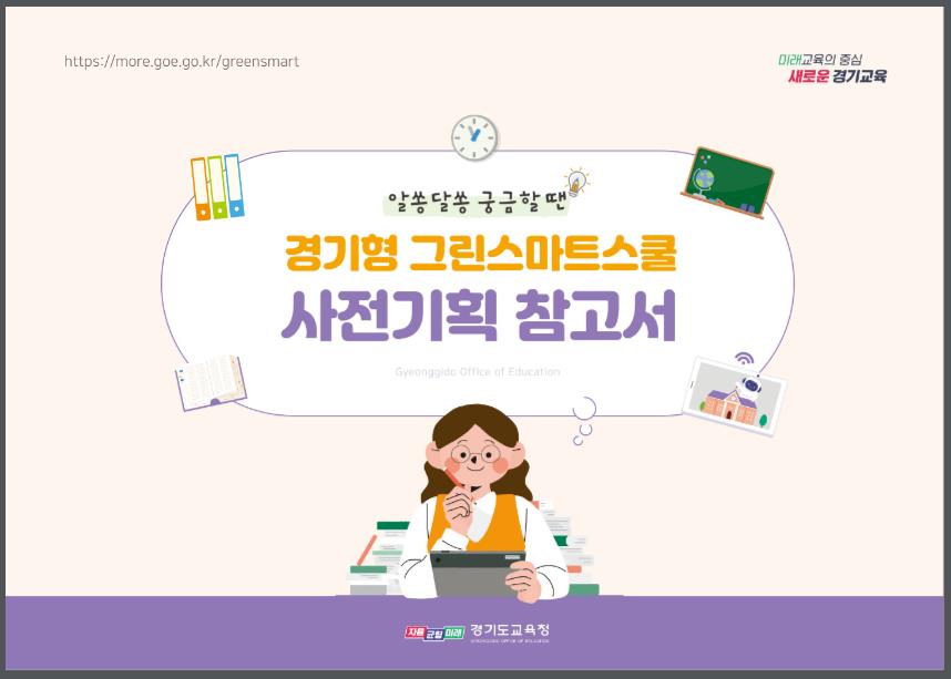 그린스마트스쿨 누리집 (https://more.goe.go.kr/greensmart)에서 자료집을 내려받을 수 있으며 2024년 그린스마트스쿨 대상교 연수와 설명회를 통해서도 안내할 계획이다.