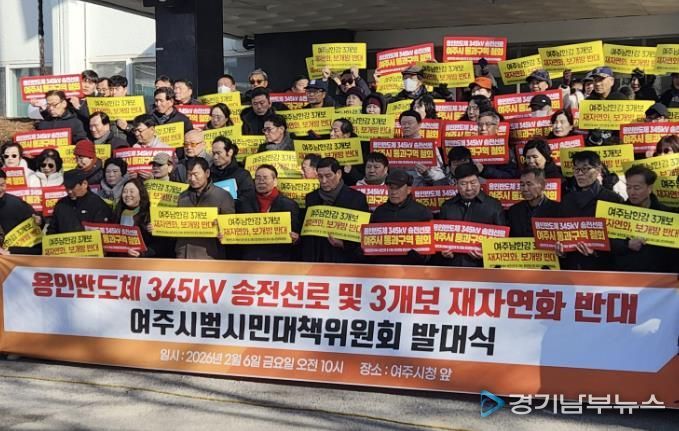 [경기남부뉴스 김혜숙 기자] 여주시는 지난 6일 '여주시 범시민 대책위원회'로부터 345kV 송전선로의 여주시 통과와 여주 남한강 3개 보 재자연화와 개방을 반대하는 두 개의 결의문을 전달받았다. 이 자리에서 이충우 시장은 “시민 여러분의 뜻을 받들어 시장으로서 중앙정부에 여주 시민의 간절한 마음을 잘 전달하겠다”는 뜻을 밝혔다.
