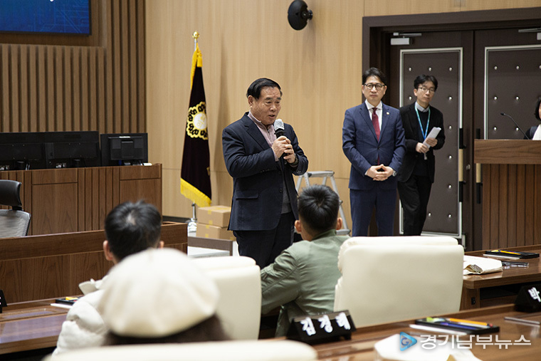 현경환 의원은 환영 인사를 시작으로 의회 운영 전반에 대해 설명했고, 학생들이 본회의장을 견학하며 지방의회의 기능과 의사 진행 절차에 대한 이해를 높이도록 안내했다.