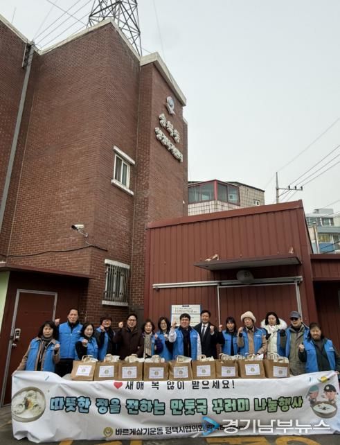 [경기남부뉴스 김혜숙 기자] 평택시 송북동 바르게살기위원회는 지난 10일 설을 앞두고 송북동 내 취약계층 어르신들에게 만두와 사골곰탕을 전달하는 나눔 행사를 진행했다.