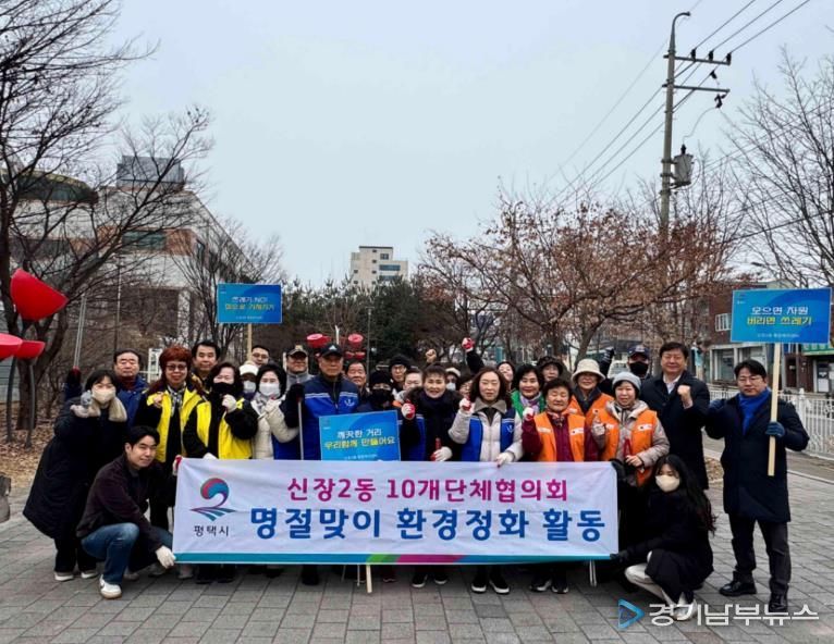 [경기남부뉴스 김혜숙 기자] 평택시 신장2동은 지난 10일 설 명절을 앞두고 주민자치회와 통장협의회를 비롯한 관내 10개 단체, 50여 명이 참여한 가운데 설맞이 민관합동 일제 대청소를 진행했다.