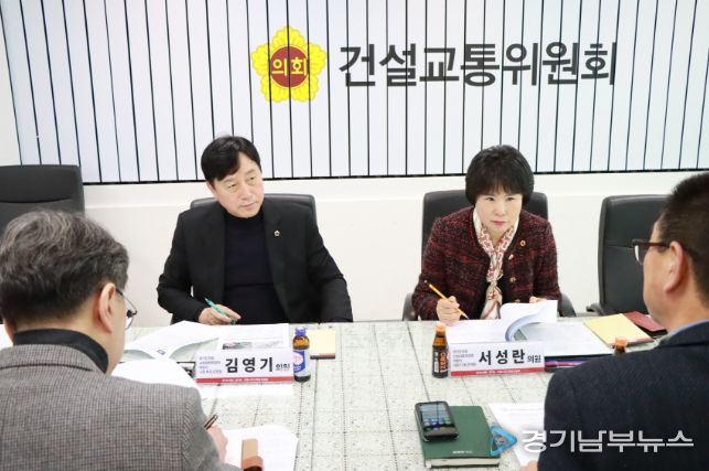 [경기남부뉴스 김혜숙 기자] 경기도의회 건설교통위원회 서성란 의원(국민의힘·의왕2)과 교육행정위원회 김영기 의원(국민의힘·의왕1)은 13일 경기도의회 건설교통위원회 회의실에서 경기도 및 의왕시 관계 부서와 함께 의왕시 도시재생사업 추진 현황을 점검하고 대응 방안을 논의하기 위한 정담회를 개최했다.