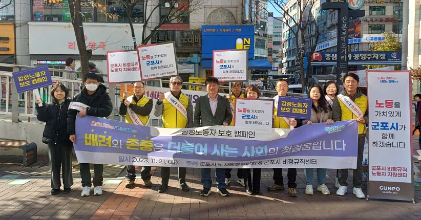 군포시는 21일 감정노동자와 시민이 상호 배려하는 평등한 사회 문화 정착을 위한 ‘감정노동자 보호 캠페인’을 전개했다.