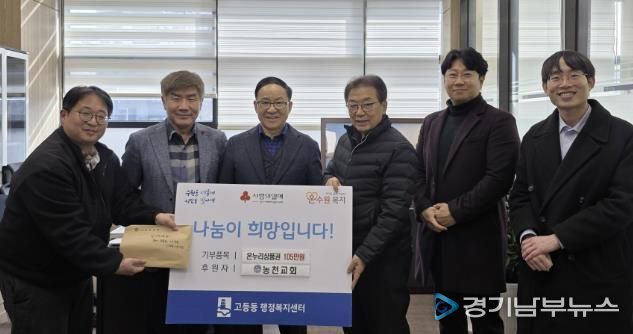 [경기남부뉴스 김정옥 기자] 수원시 팔달구 고등동에 소재한 농천교회는 지난 11일, 설 명절을 앞두고 지역 내 어려운 이웃을 돕기 위해 고등동 행정복지센터에 온누리상품권 105만원을 기탁했다고 밝혔다.