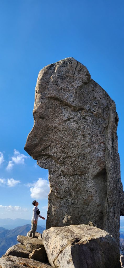 진죽봉 중 얼굴바위 밑에서 위를 쳐다보니 자연의 위대함 속에 있는 나도 장엄하구나! 장엄한 장면 속에 내가 들어가 있어 참 신기했다. 그 생각을 하며 등산을 하니 등산하는 내내 신이나고 기뻤다.