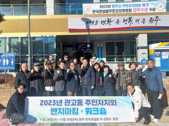원주시 반곡 관설동 주민 자치위원회는 “2023년 원주시 주민 자치 대상 평가” 최우수상, “강원 특별자치도 주민 자치 박람회”서 장려상을 수상한 곳으로 주민 자치 활성화를 위하여 적극적으로 활동하고 있다.