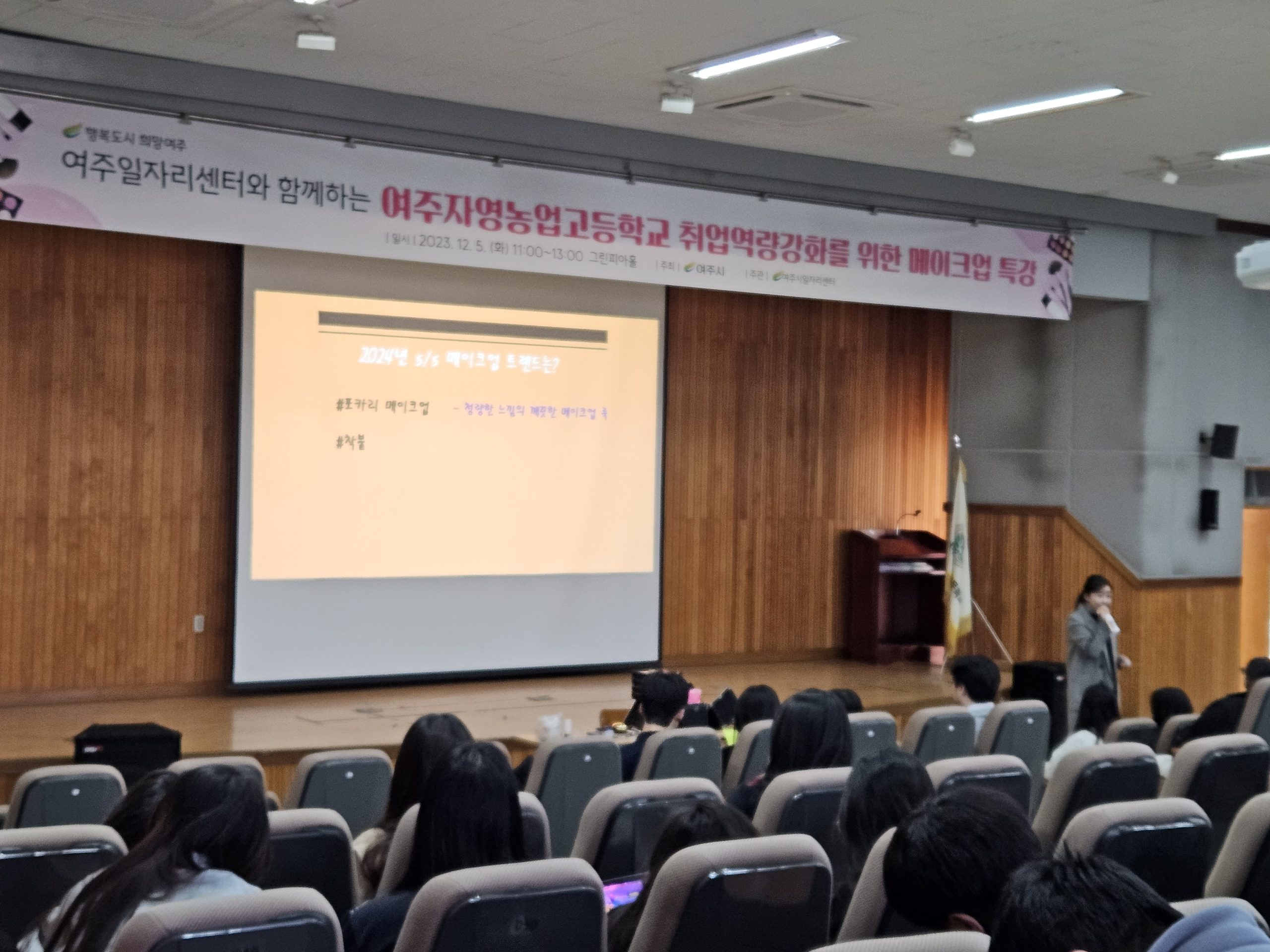 먼저, 12월 5일 여주자영농업고등학교 3학년 120명을 대상으로 실시한 취업역량강화 특강은 2024년 미래 뷰티산업의 트랜드 분석과 이미지 메이킹을 주제로, 시연 및 실습을 통하여 퍼스널 컬러와 이미지 메이킹에 필요한 내용을 경험하는 시간으로 구성되었다.
