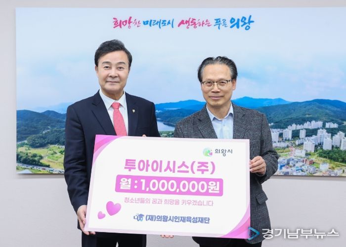 [경기남부뉴스 김혜숙 기자] 의왕시인재육성재단은 ㈜투아이시스가 의왕시 인재 육성 및 교육 발전 지원을 위한 장학금으로 매월 100만원을 재단에 정기 후원하기로 했다고 밝혔다.