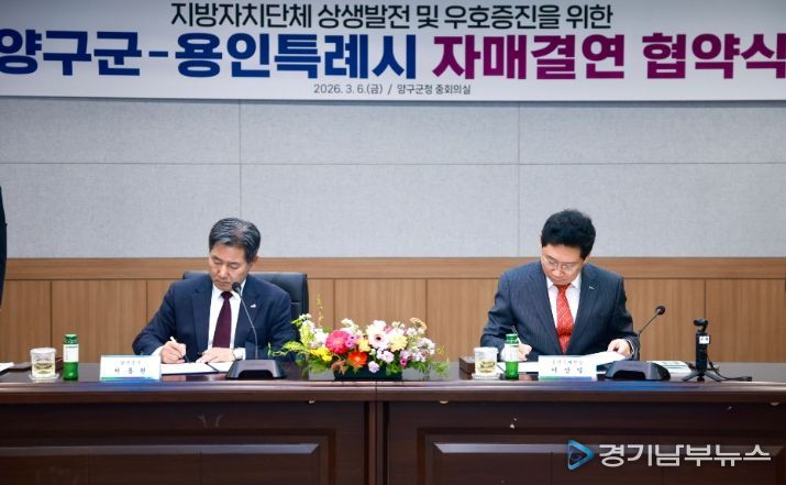 [경기남부뉴스 김혜숙 기자] 용인특례시는 6일 강원특별자치도 양구군과 자매결연을 하고, 두 도시의 교류와 발전을 위해 적극 협력하기로 했다.
