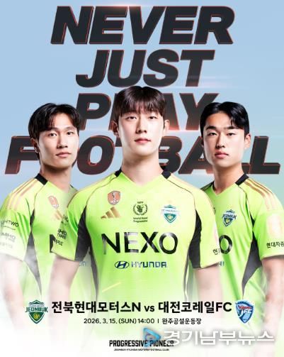 [경기남부뉴스 김혜숙 기자] 완주군을 홈으로 사용하는 전북현대모터스 N팀이 오는 15일 오후 2시 완주공설운동장에서 대전코레일FC를 상대로 2026시즌 K3리그 개막전을 치른다.