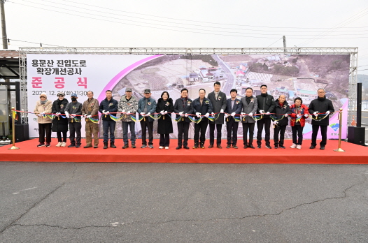 이날 준공식에는 전진선 양평군수, 윤순옥 양평군의회 의장을 비롯한 관내 기관단체장 및 지역주민 등이 참석했다. 본 행사에서는 용문산 진입도로 공사에 대한 경과보고, 시설 공사 유공자 [(주) 신용 건설 이사 양승권] 표창, 축사 및 커팅식이 진행됐다.