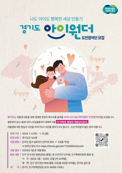 활동을 원하는 도민은 오는 15일까지 경기도 누리집(gg.go.kr)에서 온라인에서 접수(구글폼)하면 된다. 선발 결과는 1월 말 지원자에게 개별 통보될 예정이다.