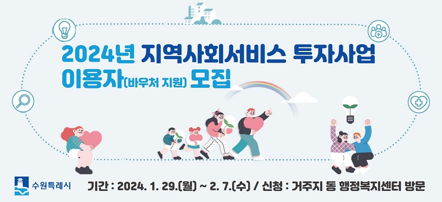 수원시가 1월 29일부터 2월 7일까지 ‘2024년 지역사회 서비스 투자사업’이용자를 모집한다.