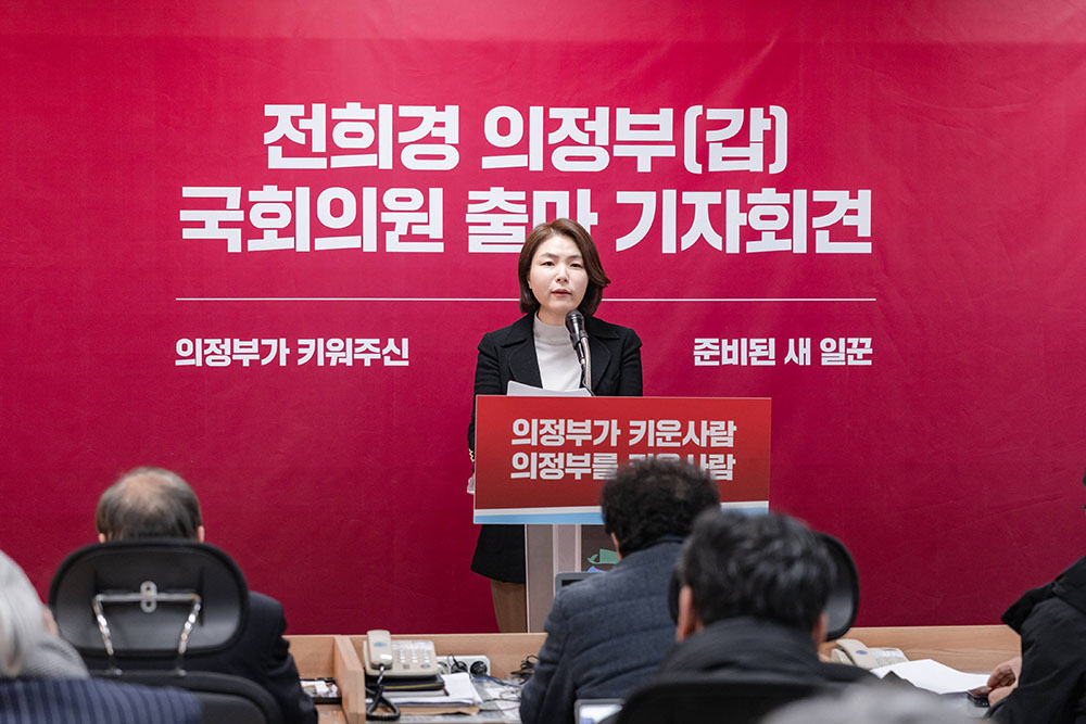 제20대 국회의원과 대통령실 정무1비서관을 역임한 전희경 예비후보가 24일 의정부시청 기자실에서 기자회견을 열고 제22대 국회의원 선거에 국민의힘 소속으로 의정부(갑) 출마를 선언했다.
