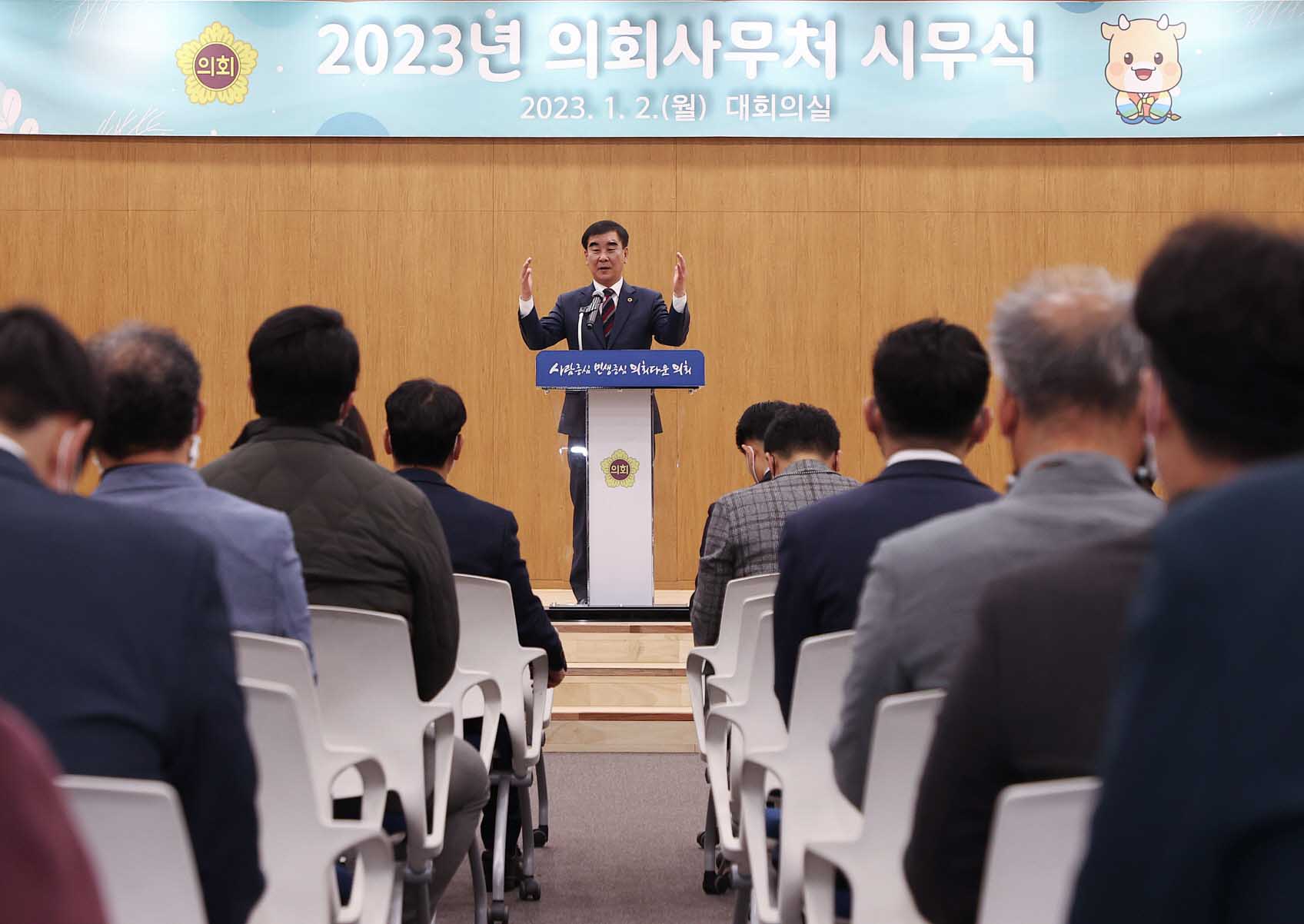 염 의장은 이 자리에서 신년사를 통해 “2023년에는 자치와 분권으로 만드는 전혀 새로운 지방의 미래가 열릴 것”이라며 “더 큰 가능성과 희망을 키우는 지방시대를 성공적으로 열 수 있도록 의회사무처 직원께서 힘을 모아달라”라고 말했다.
