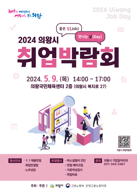 의왕시는 구직자에게 다양한 고용 정보와 취업 기회를 제공하기 위해 5월 9일(목) 오후 2시부터 5시까지 의왕국민체육센터에서 ‘2024년 의왕시 취업박람회’를 개최한다고 밝혔다.