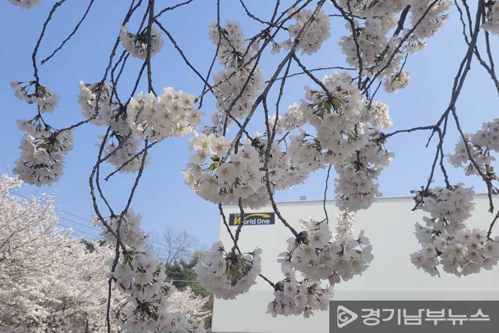 북수원시장 정거장에서 광교산(항아리화장실) 초입을 향해 걷다보면 양쪽 도로에는 벚꽃이 한가득 피어있다. 양쪽에 음식점과 카페, 베이커리까지 두루 있어 나들이에는 제격이다. 어린 아이의 손을 잡고, 연로하신 부모님과의 걸음은 인생에 또 한 페이지 추억을 만들게 한다.