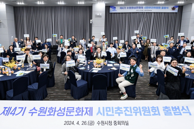 26일 제4기 수원화성문화제 추진위원회 출범식에 함께한 이재준 시장은“여러분이 적극적으로 아이디어를 내고, 시민들이 함께 즐길 수 있는 프로그램을 만들어 달라”며“시민들이 주인이 돼 축제를 만들어 가면, 수원화성문화제는 세계적인 축제로 발전할 수 있을 것”이라고 기대했다.