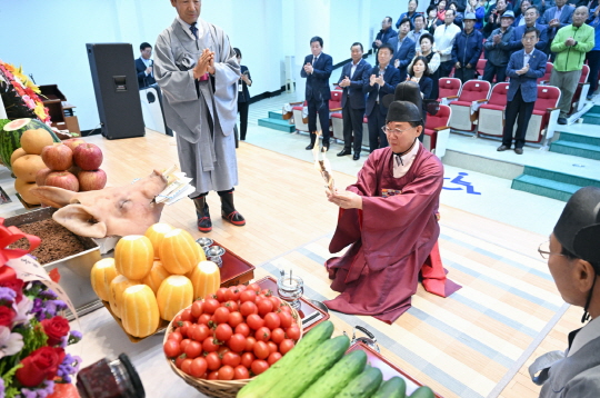 이날 행사에는 이민근 시장을 비롯해 농업인·단체장·농업 유관기관 관계자 등 200여 명이 참석했다. 행사는 대풍을 기원하는 안산시립국악단의 국악 공연을 시작으로 전통 제례 의식 봉행, 농업인들의 화합·소통의 시간을 갖는 순서로 진행됐다.
