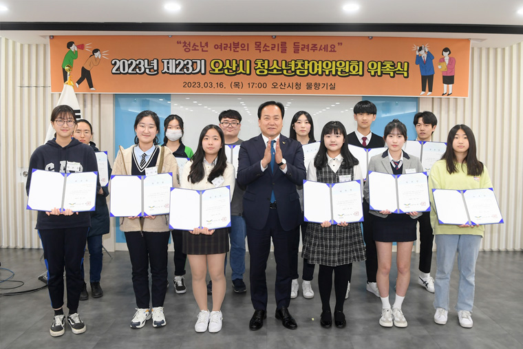 오산시(시장 이권재)는 지난 16일 시청 물향기실에서 2023년‘제23기 오산시청소년참여위원회 위원 위촉식 및 제1차 정기회의’를 개최했다고 밝혔다.