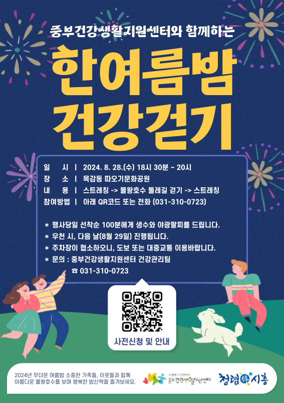 정성근 중부건강생활지원센터장은 “이번 행사를 통해 지역주민들이 이웃들과 함께 즐거운 걷기 활동을 체험하며, 무더운 여름을 건강하게 이겨내고 일상에서도 걷기를 실천할 수 있기를 바란다”라고 말했다.