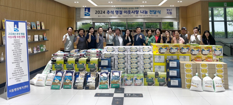 5일 수원시 팔달구 지동(동장 정순화)은 추석 명절을 맞이해 동 행정복지센터에서 어려운 이웃을 돕기 위한 추석맞이 이웃사랑 나눔 전달식을 했다.