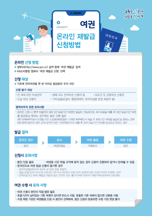 수원시가 1회 방문으로 여권을 발급받는 온라인 여권 재발급 신청 서비스를 제공한다.