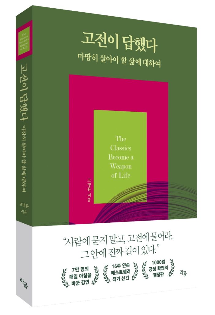 이 책의 저자 고명환 작가는 야옹이를 사랑하는 개그맨, 책 읽고 책 쓰는 사람, 강의하는 사람, 메밀국수 파는 사람, 자유로운 사람이라고 인스타그램에 자신을 소개한다. 매일 아침 7만 명이 그의 유튜브 강의를 찾아 듣고, 한 달에 20여 차례 전국의 강연장을 찾아가 독자들을 만나는 강연자로 인기를 누리고 있다. 베스트셀러 저자이기도 한 그는 지난 10년간의 인생 내공이 응축된 책,『고전이 답했다 마땅히 살아야 할 삶에 대하여』에서 고전(古典)에서 길어 올린 흔들림 없는 삶의 내공을 전한다.