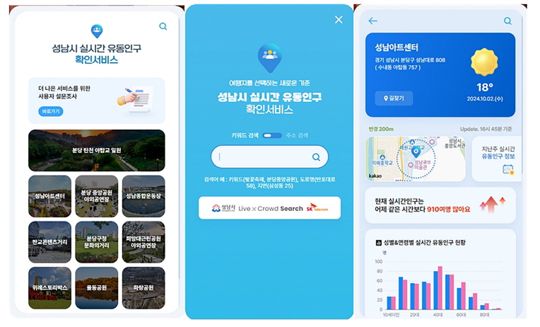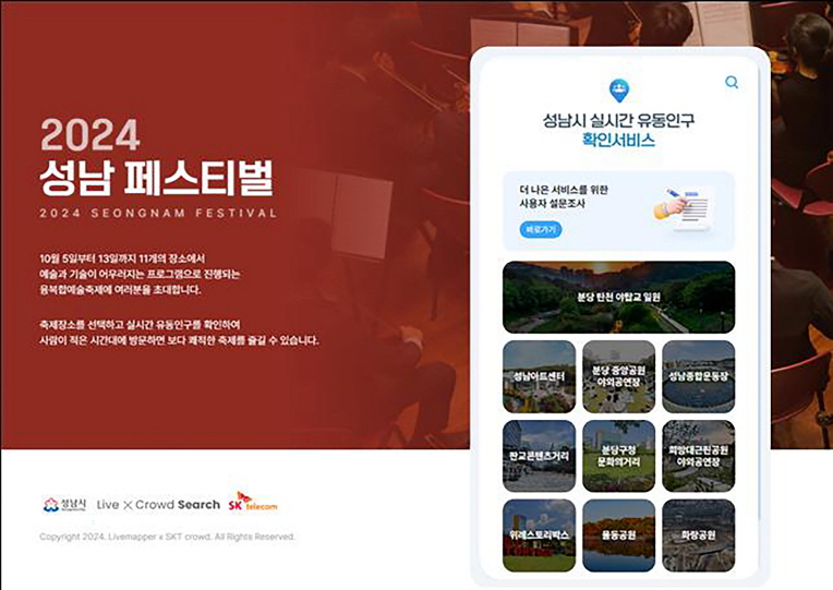 성남시의 실시간 유동 인구 확인 서비스는 지난 4월 벚꽃 개화 시기에 맞춰 처음 시범 운영한 이후 이번이 2번째다.