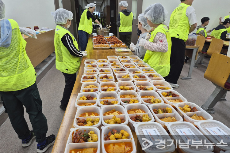 ‘사랑의 도시락 나눔’ 안양시가족센터(센터장 오연주)가 운영하는 모두가족봉사단이 16일 대림대학교와 함께 사랑의 도시락을 만들었다.