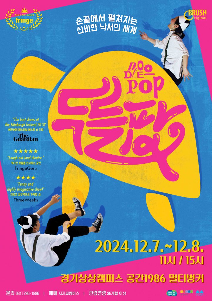 경기도 공연장상주단체 ‘브러쉬씨어터’의 대표작인 ‘두들팝’은 드로잉과 프로젝션 맵핑 기술, 라이브 연주를 활용한 융복합 미디어 드로잉쇼이다. 세계 유수의 공연 매체에서 인정받아 2018년 영국 에딘버러 프린지 페스티벌, 2023년 아르헨티나 코르도바 연극제 최고 작품상 수상, 2023년 미국 링컨센터 초청작으로 선정되었다. 살아 움직이는 것 같은 낙서들이 관객들의 상상력과 창의성 자극하는 공연이며 공연장을 가득 채우는 라이브 악기 연주의 선율로 재미를 넘어 예술적 영감을 불어넣어 줄 것으로 기대한다.