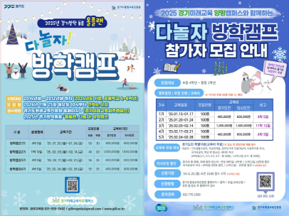 캠프는 내년 1월 13일부터 2월 28일까지 파주와 양평 캠퍼스에서 각각 진행된다. 참가 신청은 오는 25일부터 경기도평생교육진흥원 누리집(gill.or.kr)을 통해 가능하며, 파주 캠퍼스 300명과 양평 캠퍼스 500명 등 총 800명을 선착순 모집한다.