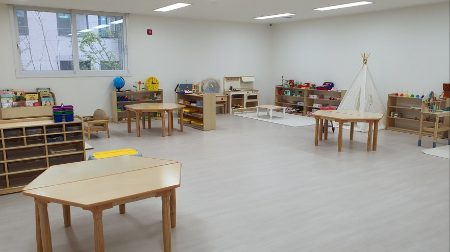 보육실 14개, 교사실, 화장실, 조리실 등을 갖춰 30명의 보육교사가 0~5세 영유아 198명(정원)을 돌본다.