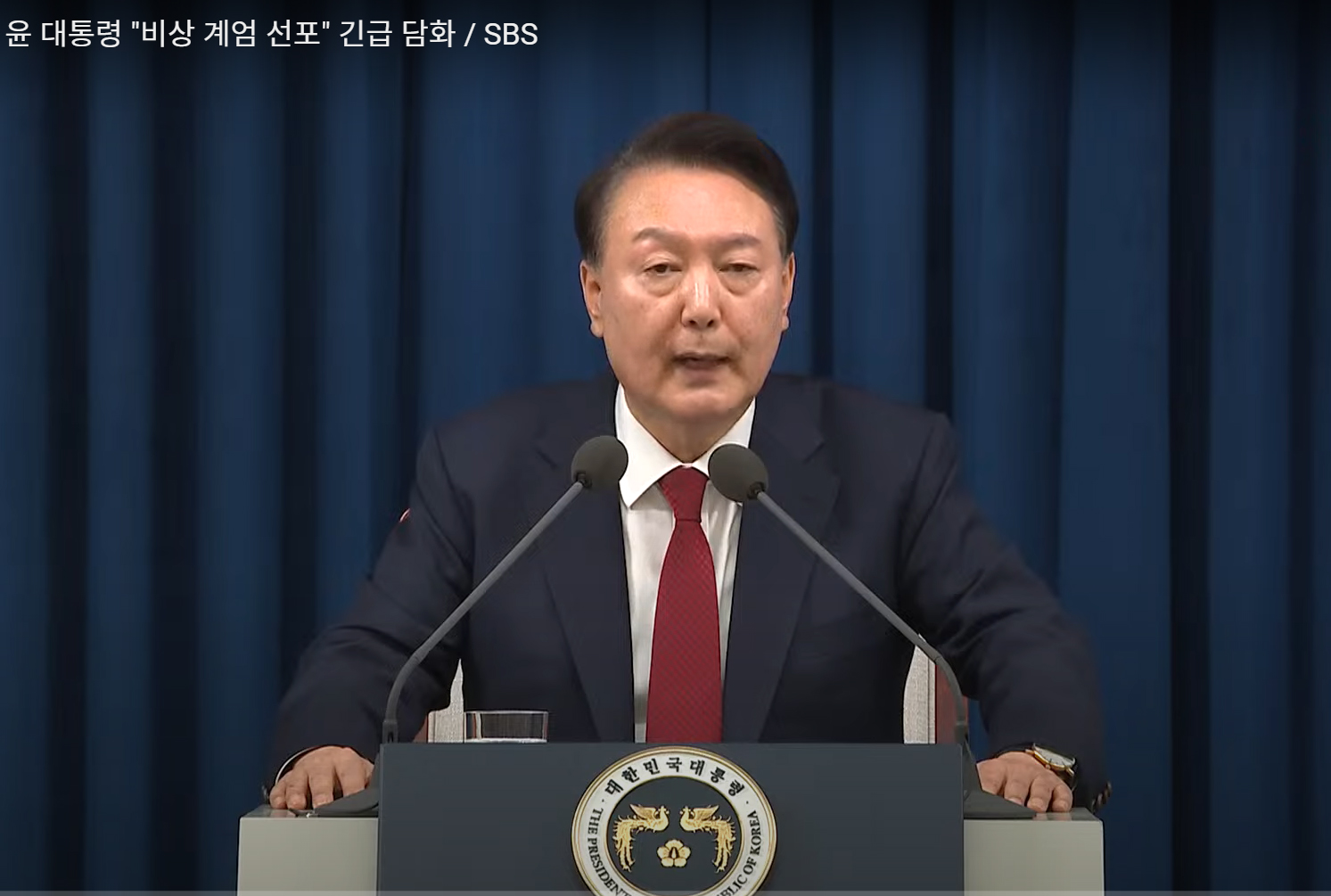 한국의 윤석열 대통령이 3일 밤 10시 30분 긴급 ‘비상계엄 선포’를 했다. 전국민은 SBS, YTN 등을 통해 전국에 생방송으로 이 갑작스런 담화를 대했다.