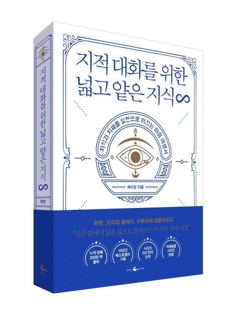 10년간 베스트셀러의 자리를 지키며 우리 시대 교양서 《지적 대화를 위한 넓고 얕은 지식》으로 대표적인 인문학 작가로 자리매김한 채사장이 5년 만에 다시 시리즈의 신작으로 돌아왔다. 작가는 전작 1, 2권에 이어 3권이 아니라 0권 <제로> 편을 출간하며 전례 없는 시리즈 구성을 보임과 동시에, 0이라는 숫자로 인류의 방대한 지성사를 연결하며 깊은 지식까지 아울렀다. 그리고 이제 5년 만의 신작 ∞권 <무한> 편은 깊은 지식으로 잠영했다 삶으로 돌아오게 하는 ‘실천’의 영역을 다루며, 10년간 인문 분야에 큰 반향을 일으킨 시리즈의 정점을 찍는다.
