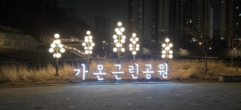 가온공원에는 야간에 공원 내 안전을 강화하고 아름다운 야경을 즐길 수 있도록 공원 곳곳에 경관조명이 설치됐다. 일몰부터 자정까지 수국 산책로를 따라 흐르는 개천의 물소리와 함께 은은한 조명을 만끽할 수 있으며, 공원 광장에 설치된 나무 트리와 팔각정 부근에 설치된 조명은 공원에 화려함을 더해준다.