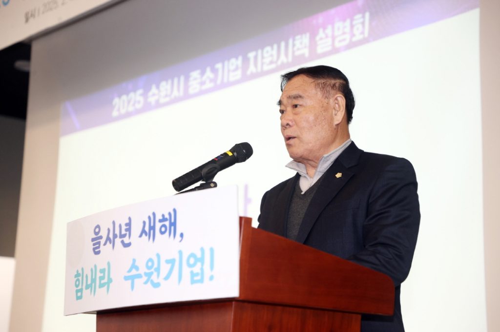 수원특례시의회 이재식 의장이 4일 수원시 기업지원센터에서 열린 「2025년 중소기업 지원시책 설명회」에 참석해, 중소기업에 대한 지원 방안을 논의했다.