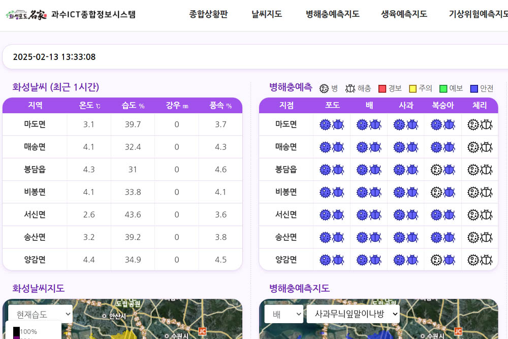 특히 화성시 기상대 관측을 통한 데이터 수집으로 병해충 발생, 기상위험, 생육 단계 예측 정보 등을 농장에 전달해 생산성을 높이는 ‘과수 ICT종합정보시스템’과 농가별 환경 데이터를 실시간으로 수집해 정밀 환경 관리와 원격 제어에 활용하는 ‘과수 스마트팜 통합관제시스템’ 운영에 깊은 관심을 보였다.