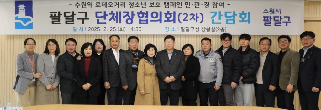 수원시 팔달구(구청장 이상균)는 25일, 팔달구 단체장협의회, 청소년범죄예방위원회, 수원서부경찰서 등민·관·경이 함께참여한 수원역 로데오거리 청소년 캠페인의 그간 추진실적과 사례를 공유하는 자리로 간담회를 개최했다.