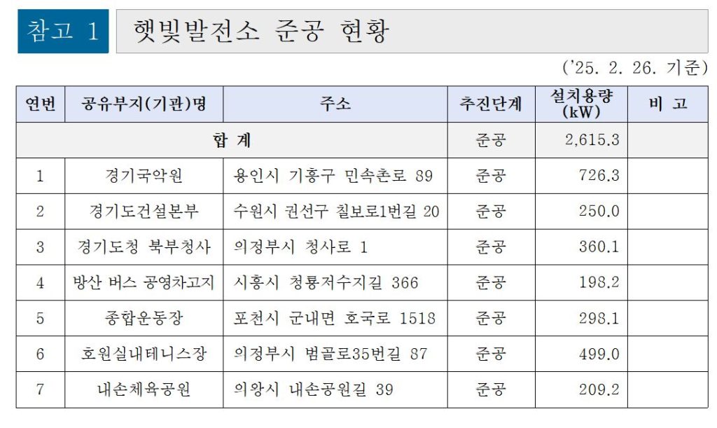 Q. 경기도내 햇빛발전소 준공 현황은 어떤가?