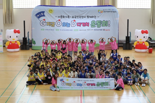 수원시다문화가족지원센터(센터장 유경선)는 26일(토), 경기도인재개발원 체육관에서 제1회 ‘GOD: 지금 우리 다가치 운동회’를 성공적으로 개최했다고 밝혔다.