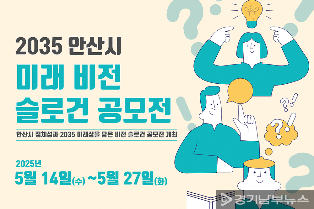 안산시에서 안산의 미래 발전 방향에 대한 시민들의 창의적인 아이디어를 시청 계획에 반영하기 위해 ‘2035 안산비전 종합발전계획’ 수립을 위한 시민 참여 ‘비전 슬로건 공모전’을 개최한다. 슬로건의 주제는 ‘2035년 안산시 미래 발전의 비전을 담은 상징적이고 대중적인 슬로건’이다.