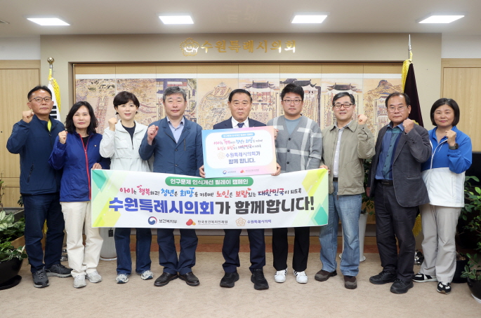 수원특례시의회(의장 이재식)는 21일(수), 인구감소와 고령화 문제에 대한 사회적 인식을 제고하고자, 한국보건복지인재원 및 보건복지부와 함께 인구문제 인식개선 릴레이 캠페인에 참여했다.