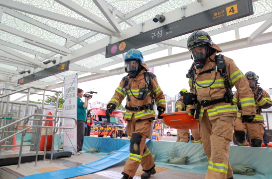 훈련은 ▲시간당 150mm의 집중호우로 GTX 구성역 지하 역사에 하수가 역류하면서 대규모 침수 발생 ▲전기 합선으로 화재 발생 ▲유독가스 흡입 등으로 지하 3·4층에서 인명 피해 다수 발생 ▲4번 출입구 인근 싱크홀 발생 등 복합 재난 상황을 가정해 이뤄졌다.
