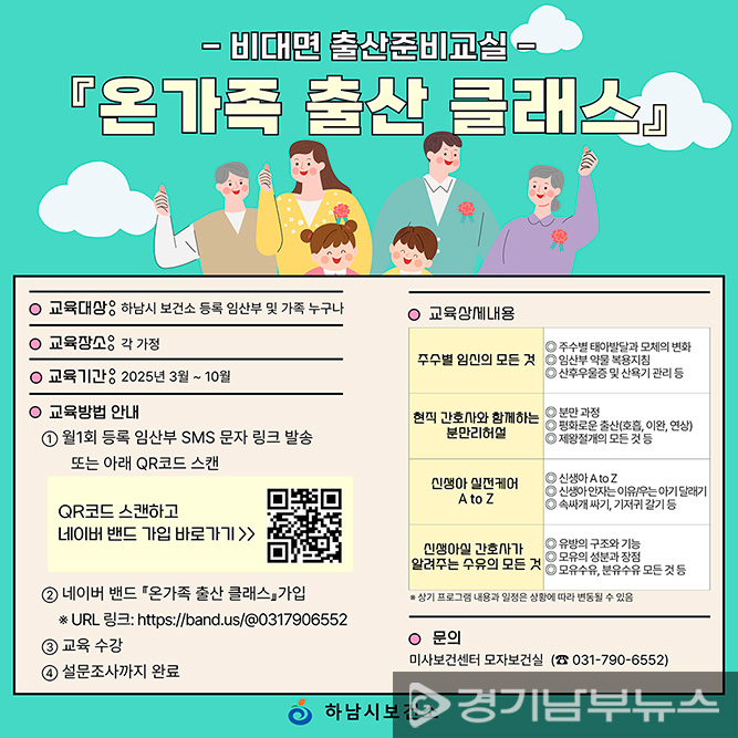 하남시가 임산부와 가족이 함께 출산과 육아를 준비할 수 있도록 ‘온가족 출산 클래스’를 오는 10월까지 비대면으로 운영한다. 바쁜 일상 속에서도 예비 부모가 함께 출산을 준비할 수 있도록 돕는 이번 프로그램은 시간과 장소의 제약 없이 집에서 참여할 수 있어 큰 호응을 얻고 있다.