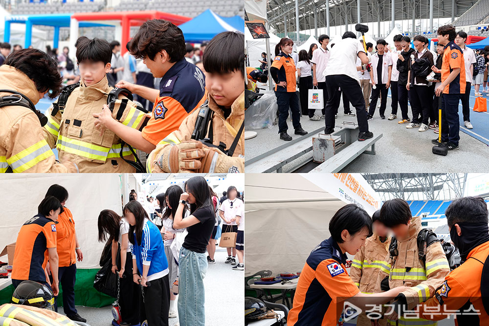 용인소방서(서장 안기승)는 지난 23일 용인 미르스타디움에서 열린 ‘2025 경기도 청소년 진로·문화축제’에서 청소년들을 위한 소방관 직업 체험 부스를 성공적으로 운영했다. 이번 행사는 경기도 내 청소년들에게 진로 탐색과 문화예술 체험 기회를 제공하며, 소방관이라는 직업에 대한 이해를 높이는 데 초점을 맞췄다.